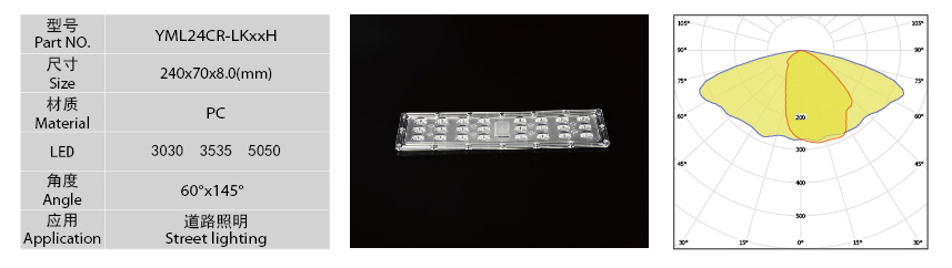 3030 LED路燈透鏡料號(hào): YML24CR-LK60145H