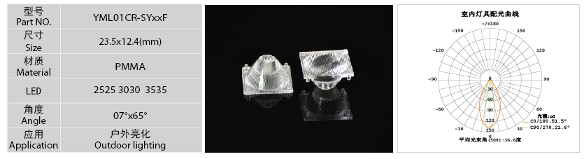 3030 LED洗墻燈透鏡料號(hào): YML01CR-SYxxF