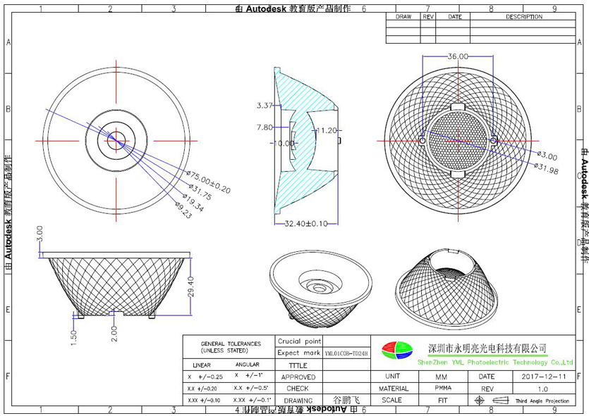 軌道燈透鏡系列料號(hào): YML01COB-TDxxH