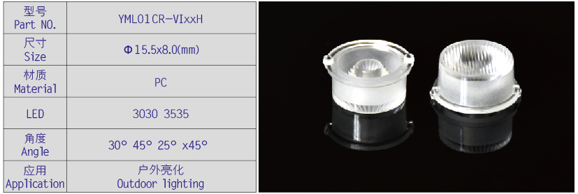 3030 LED洗墻燈透鏡料號(hào): YML01CR-VIxxH