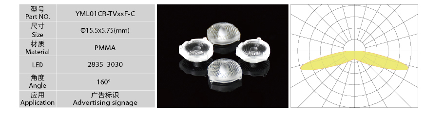 2835 LED廣告標(biāo)識透鏡料號: YML01CR-TVxxF -C