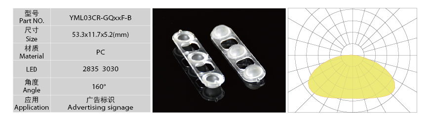 2835 LED廣告標(biāo)識(shí)透鏡料號(hào): YML03CR-GQxxF-B