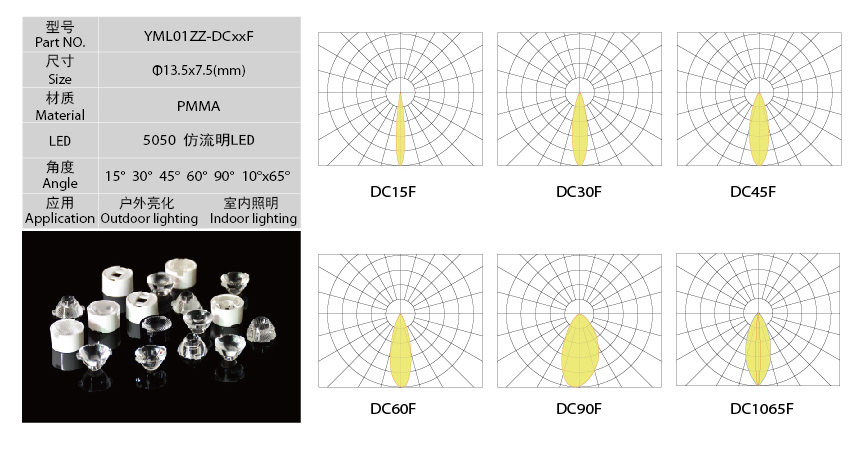 5050 LED洗墻燈透鏡料號(hào): YML01ZZ-DCxxF
