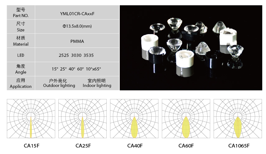 2525 LED洗墻燈透鏡料號(hào): YML01CR-CAxxF