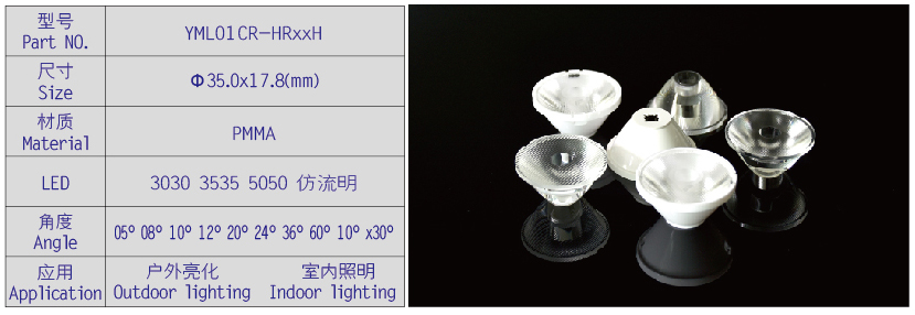 3535 LED洗墻燈透鏡料號(hào): YML01CR-HRxxH