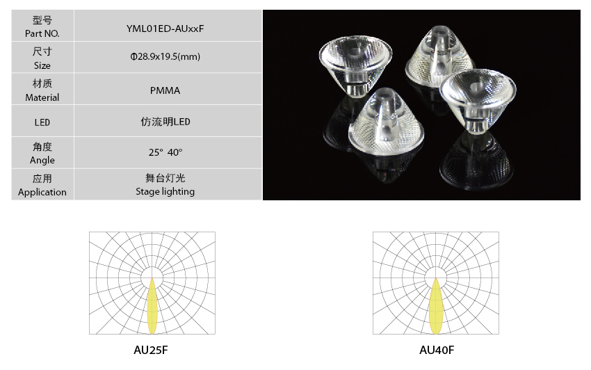 仿流明 LED舞臺(tái)燈透鏡料號(hào): YML01ED-AUxxF