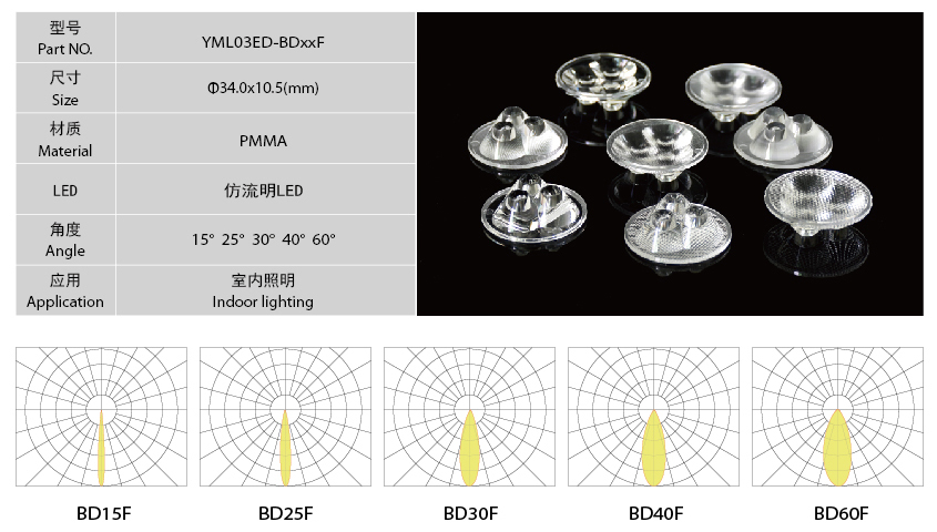 仿流明 LED室內(nèi)照明透鏡料號: YML03ED-BDxxF